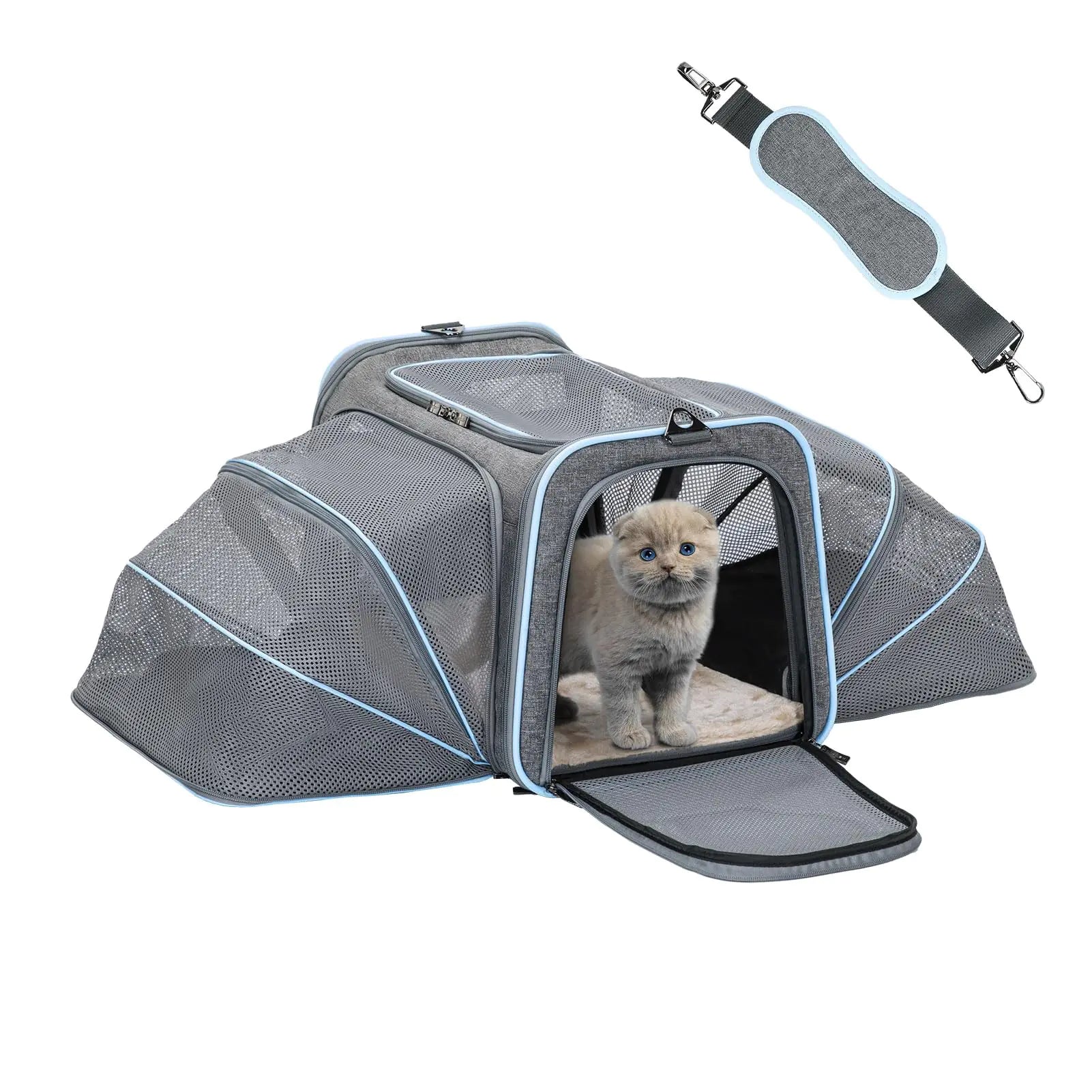 Petsfit Expandable Cat Carriers Airline Approved 16"x10"x9" Small Dog Carrier Soft-Sided Portable Washable Pet Travel Carrier with Two Extension for KittenRabbit Puppy Small Animal